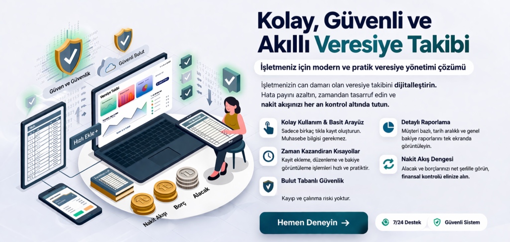 İleri Veresiye Defterim uygulaması ile tüm cari işlemlerinizi kolay, hızlı ve güvenli bir şekilde yönetebilirsiniz.
